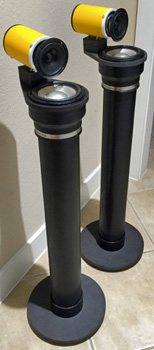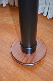 Speakon connectors are used for connections. They stand up without a base