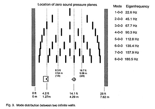 At 22.5 Hz, the 7.63 m (25 ft) room length corresponds to a half wavelength