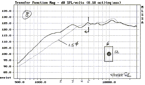 Reducing the width of the 12" square baffle to 6" has only effects below 5 kHz (7, 8).