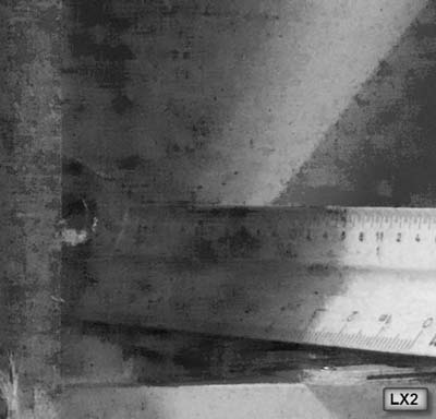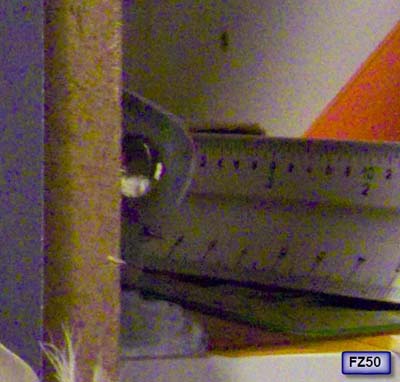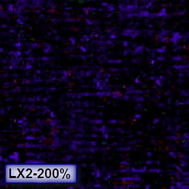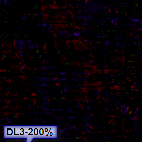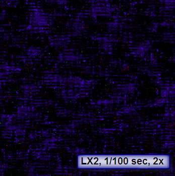 2 - Camera dark noise testsThis type of dark noise analysis was performed on four related cameras, Lumix LX2 and FZ50, and Leica D-Lux 3 and V-Lux1. The ISO 800 and RAW mode were chosen to show maximum noise. Exposure time was 1 second. Noise is shown at 100% and 200% magnification and with the color removed.
